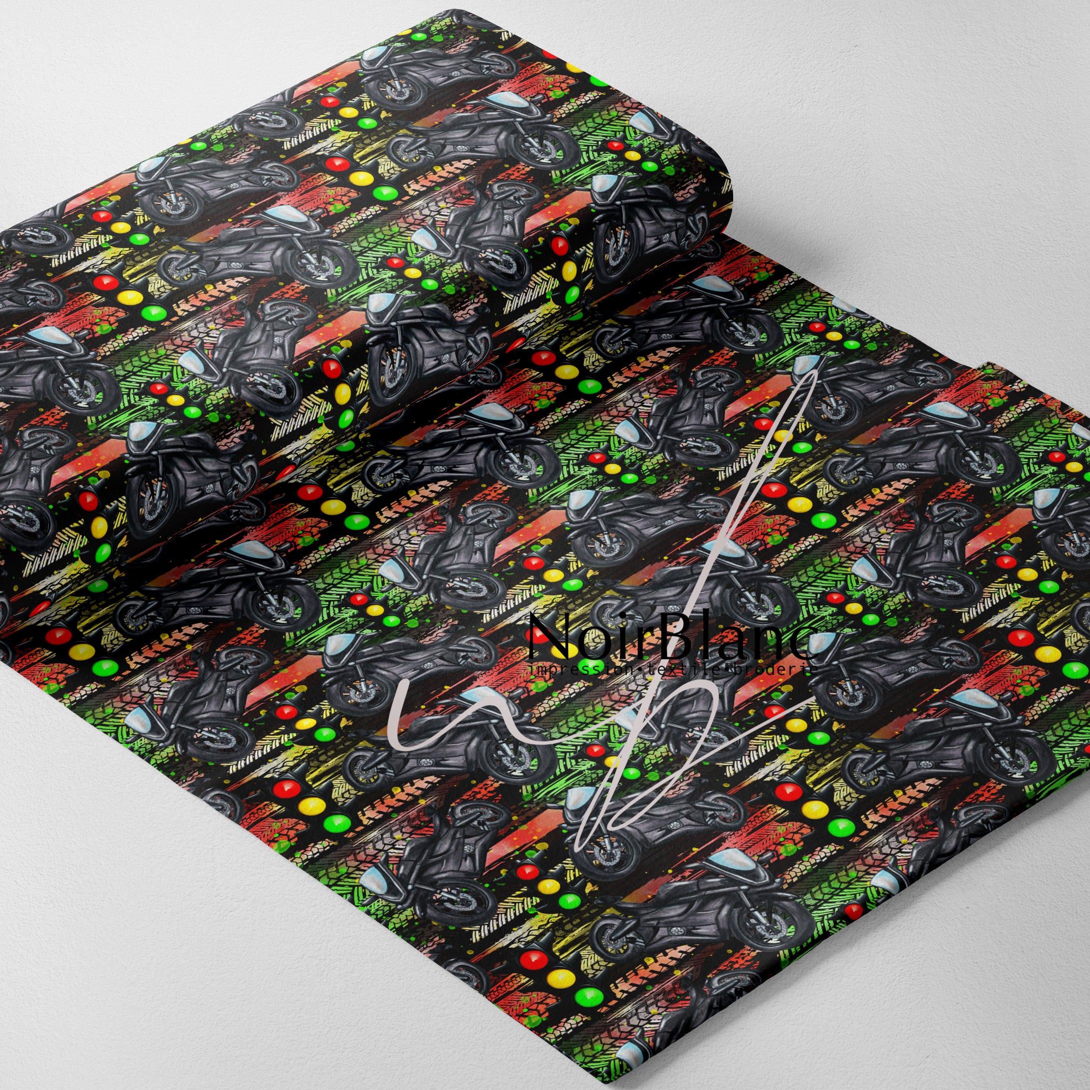 Tous nos tissus sont imprimés par sublimation ou impression directe, sur commande directement à notre atelier à Saint-Eustache, Québec, Canada dans un délai de 3 à 10 jours ouvrables.