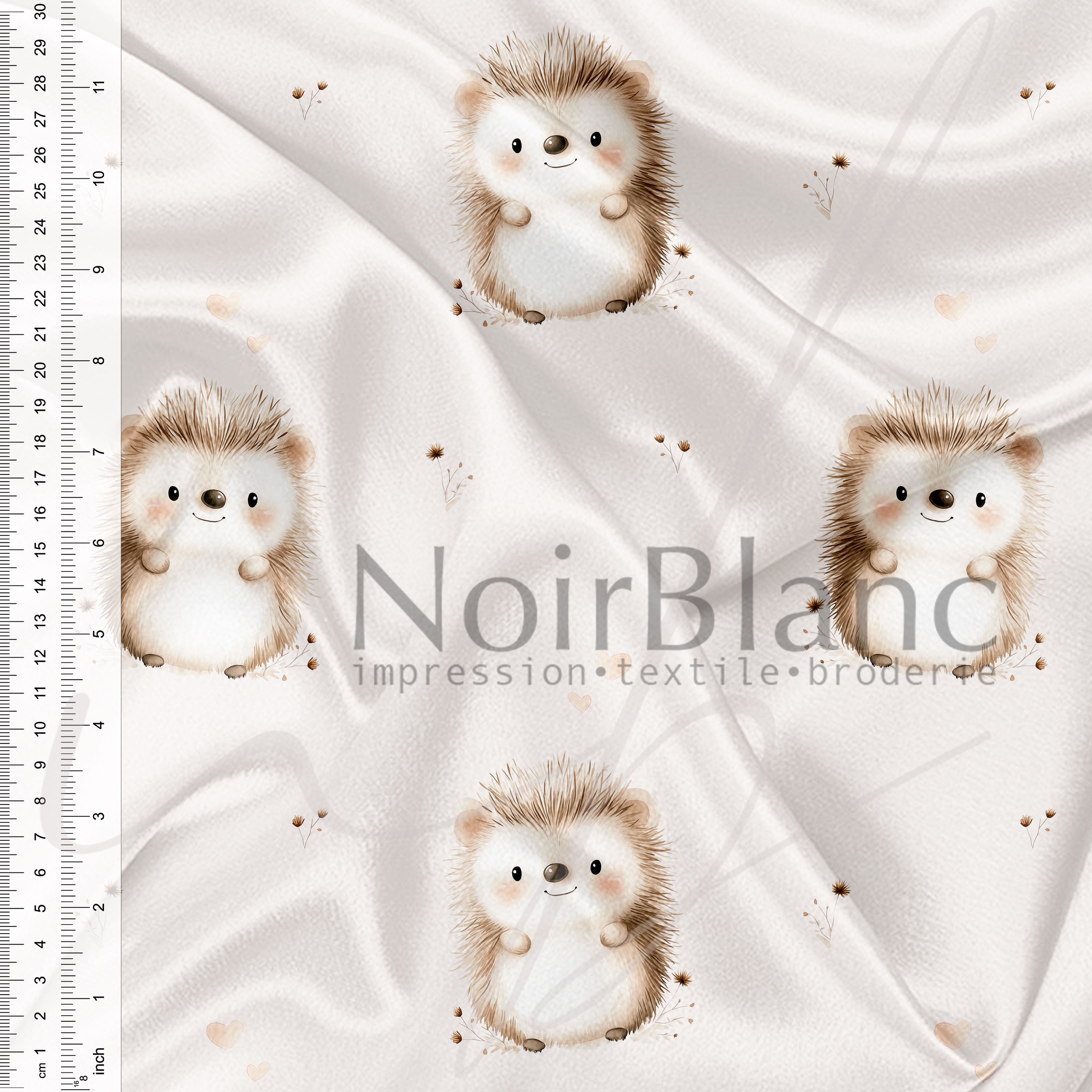*** La largeur de nos tissus peut varier entre 57 et 60 pouces de large. Par conséquent, la largeur de la zone d'impression variera aussi. TOUT défaut à l'intérieur de la largeur d'impression mais à moins de 1 pouce du bord est considéré comme acceptable et ne sera en aucun cas considéré comme étant défectueux. Par exemple, un tissu où 60 pouces est imprimé, nous nous assurons que 58 pouces est sans défaut. De plus, tout léger défaut d'impression n'excédant pas 1 pouce ou sur le verso du tissu seront jugés comme acceptables. Nous imprimons sur plusieurs imprimantes afin de vous offrir un service d'impression rapide, il peut y avoir une différence de couleurs d'une imprimante à l'autre, d'une fibre à l'autre particulièrement entre les fibres naturelles et le polyester. Nous vous suggérons fortement de toujours commander suffisamment d'un même tissu dans une même commande pour pouvoir finaliser votre projet. ***