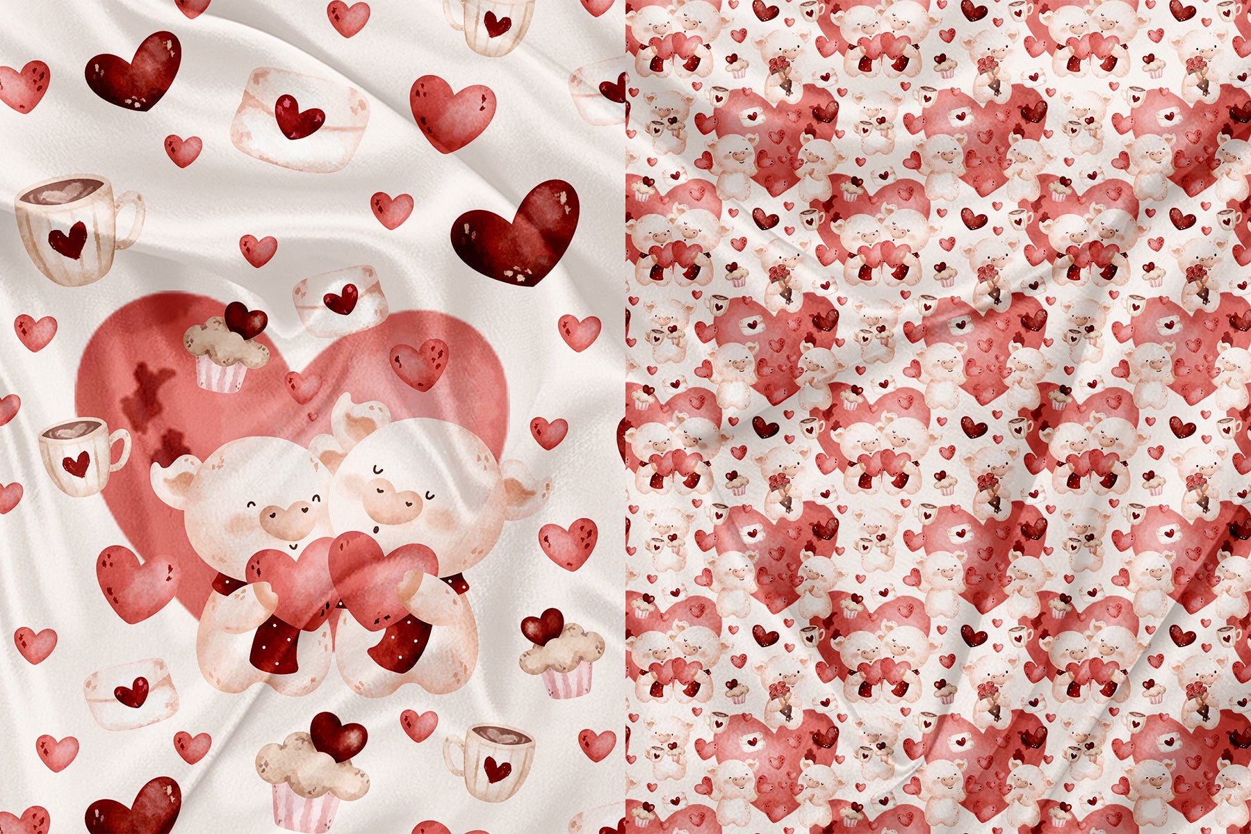 Panneau pour Vêtement et Couverture Cochon amoureux fond clair