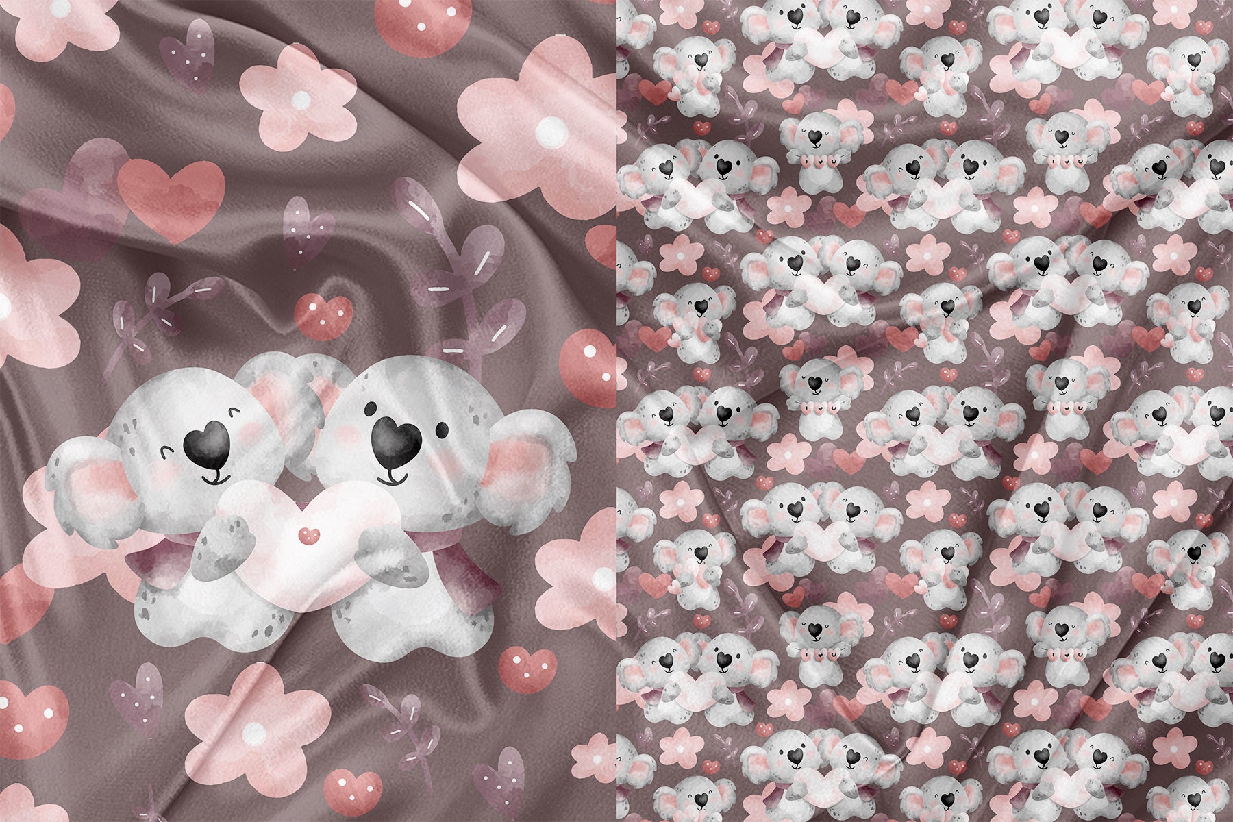 Panneau pour Vêtement et Couverture Koala amoureux prune