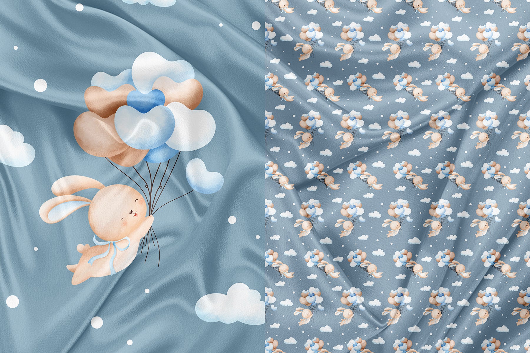 Panneau pour Vêtement et Couverture Lapin ballon en coeur bleu