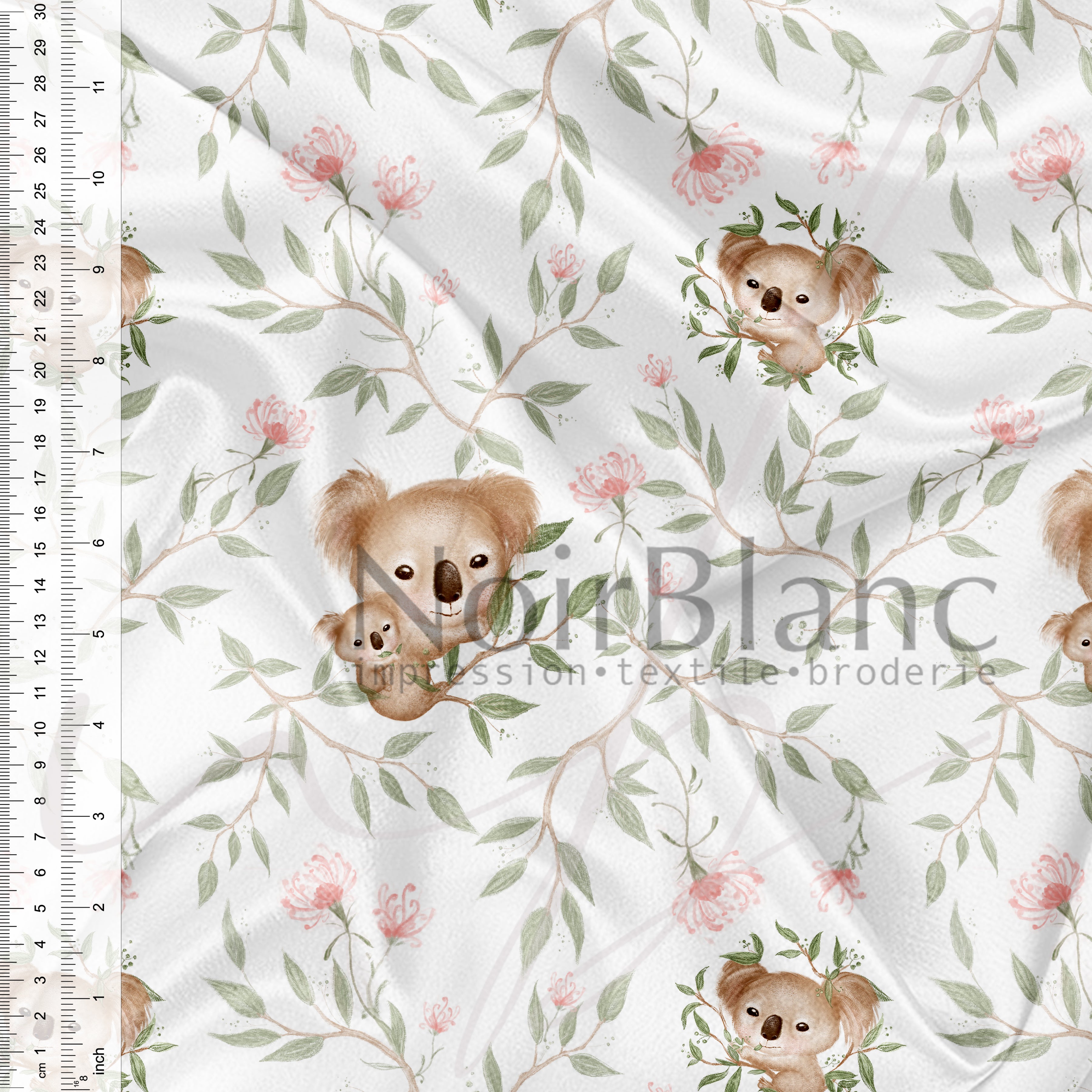 Koala souriant et fleurs tropical