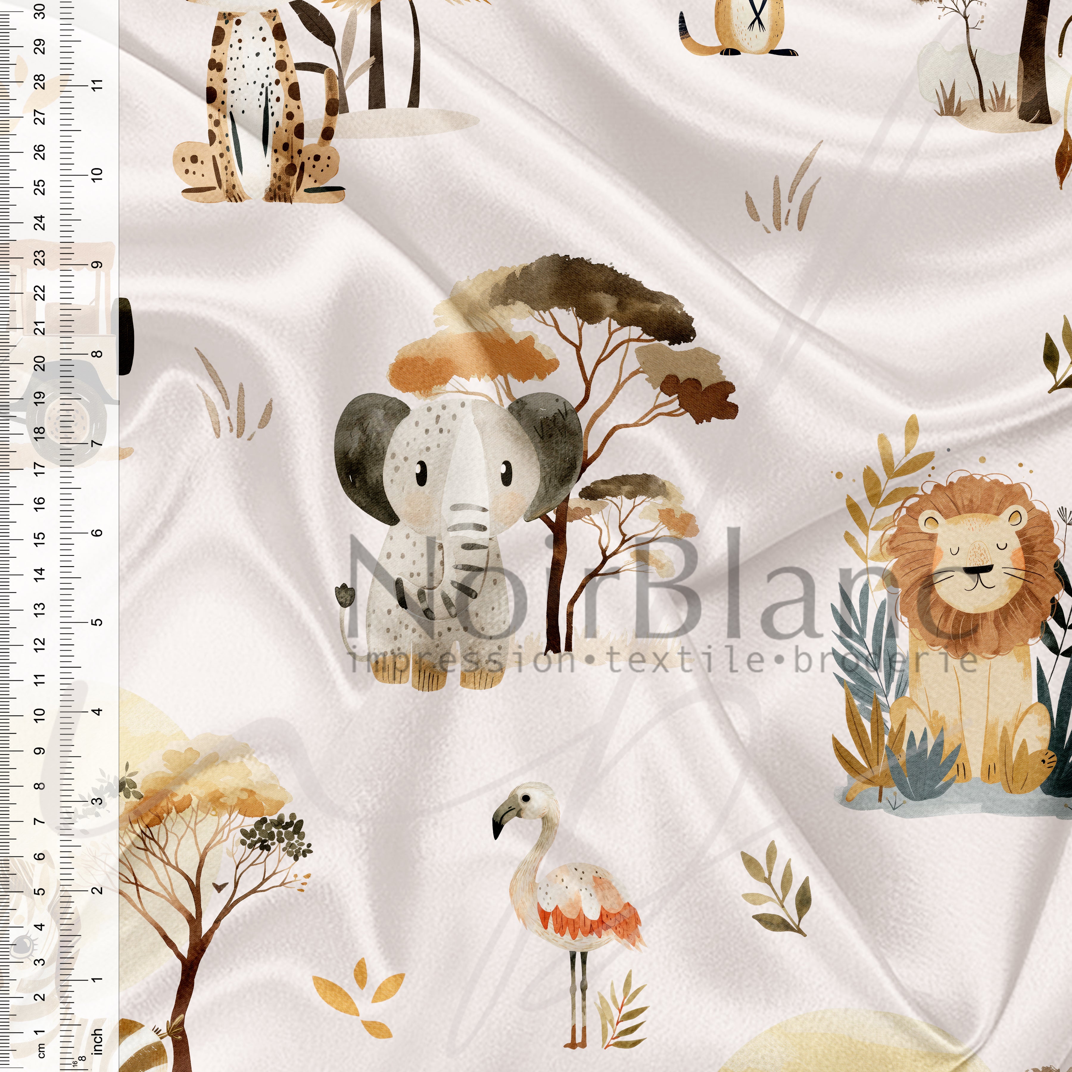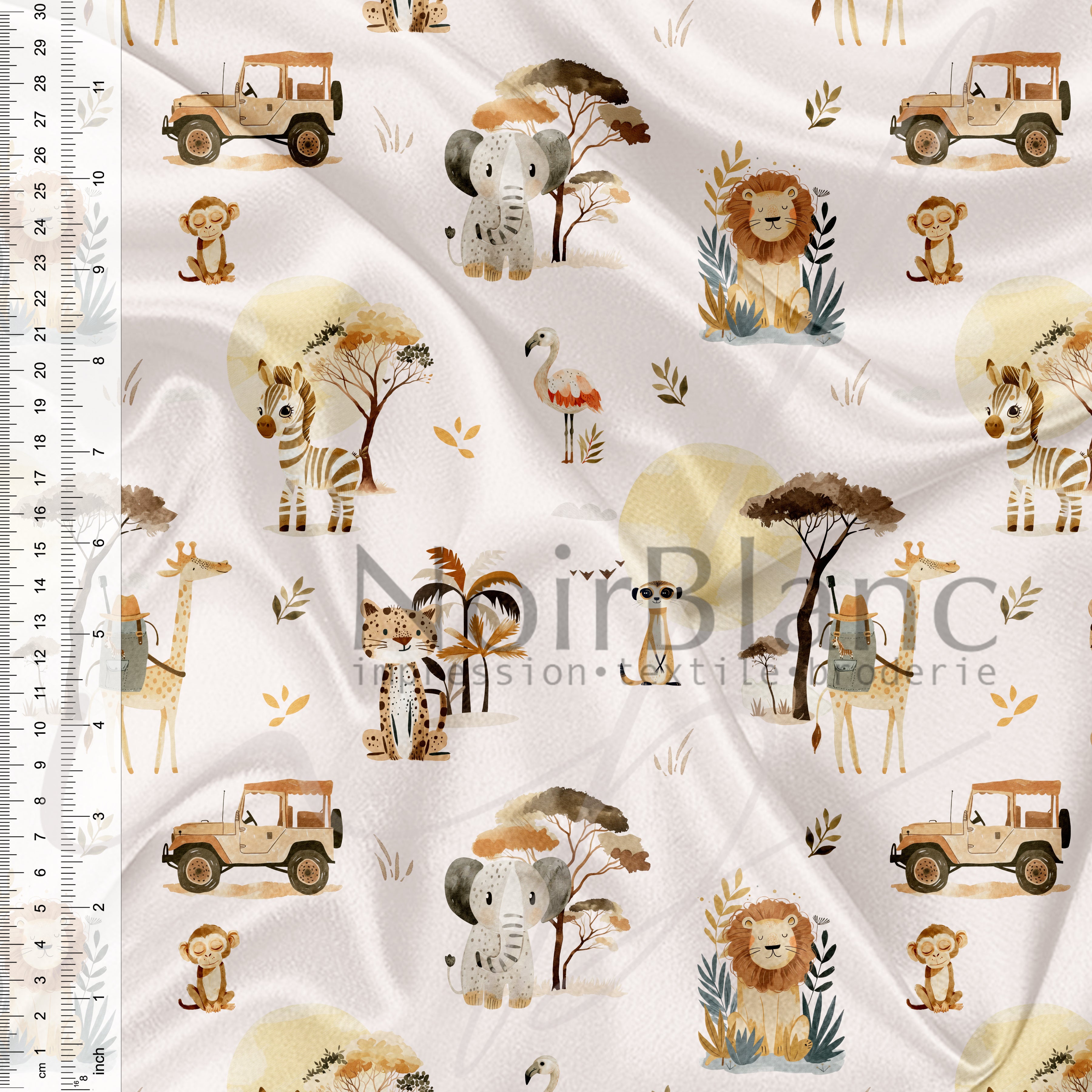 Due aux techniques d'impression utilisées ainsi qu'à la façon de procéder afin de bien fixer les couleurs sur le tissu, la longueur du tissu peut varier de +/- 5% de la quantité commandée.