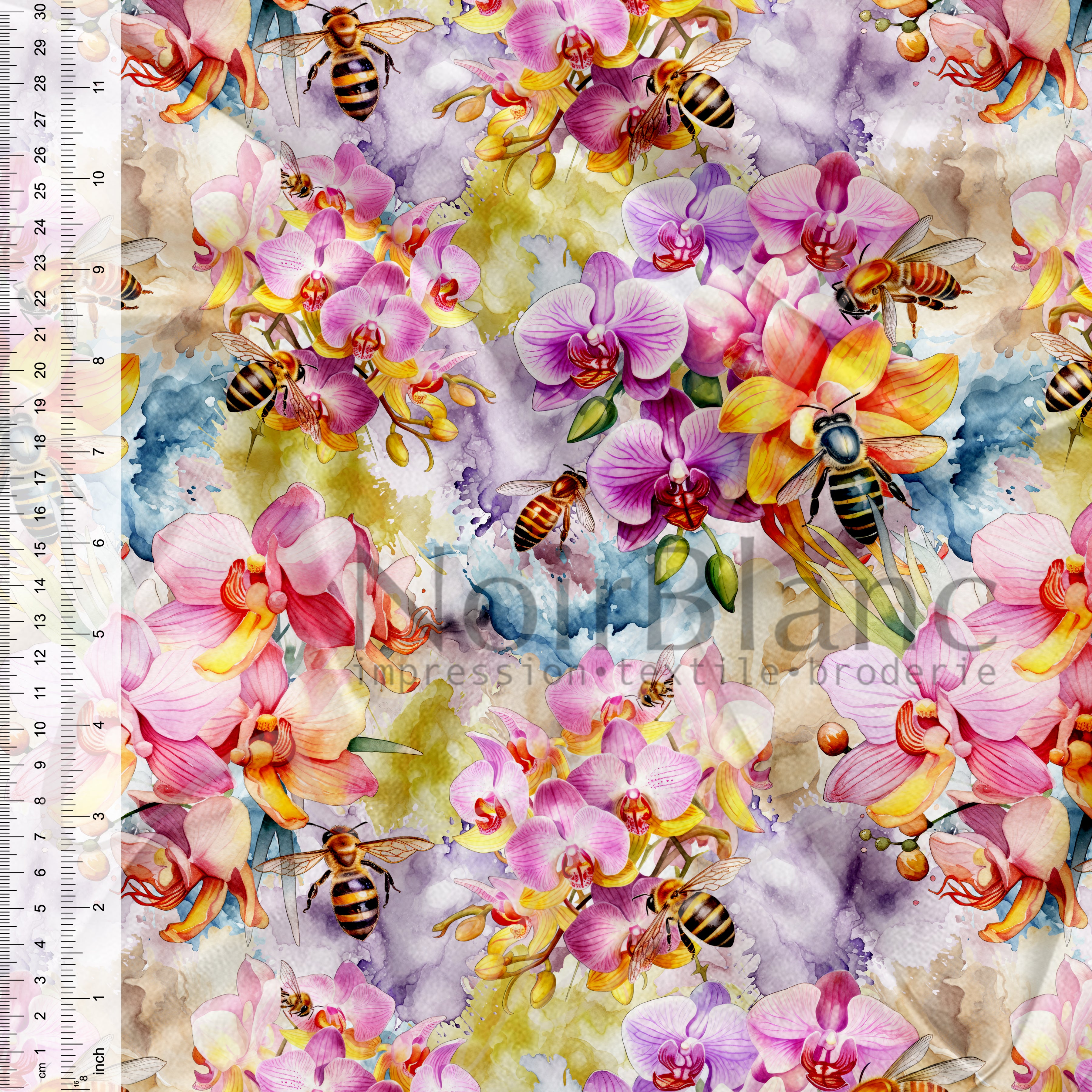 *** La largeur de nos tissus peut varier entre 57 et 60 pouces de large. Par conséquent, la largeur de la zone d'impression variera aussi. TOUT défaut à l'intérieur de la largeur d'impression mais à moins de 1 pouce du bord est considéré comme acceptable et ne sera en aucun cas considéré comme étant défectueux. Par exemple, un tissu où 60 pouces est imprimé, nous nous assurons que 58 pouces est sans défaut. De plus, tout léger défaut d'impression n'excédant pas 1 pouce ou sur le verso du tissu seront jugés comme acceptables. Nous imprimons sur plusieurs imprimantes afin de vous offrir un service d'impression rapide, il peut y avoir une différence de couleurs d'une imprimante à l'autre, d'une fibre à l'autre particulièrement entre les fibres naturelles et le polyester. Nous vous suggérons fortement de toujours commander suffisamment d'un même tissu dans une même commande pour pouvoir finaliser votre projet. ***