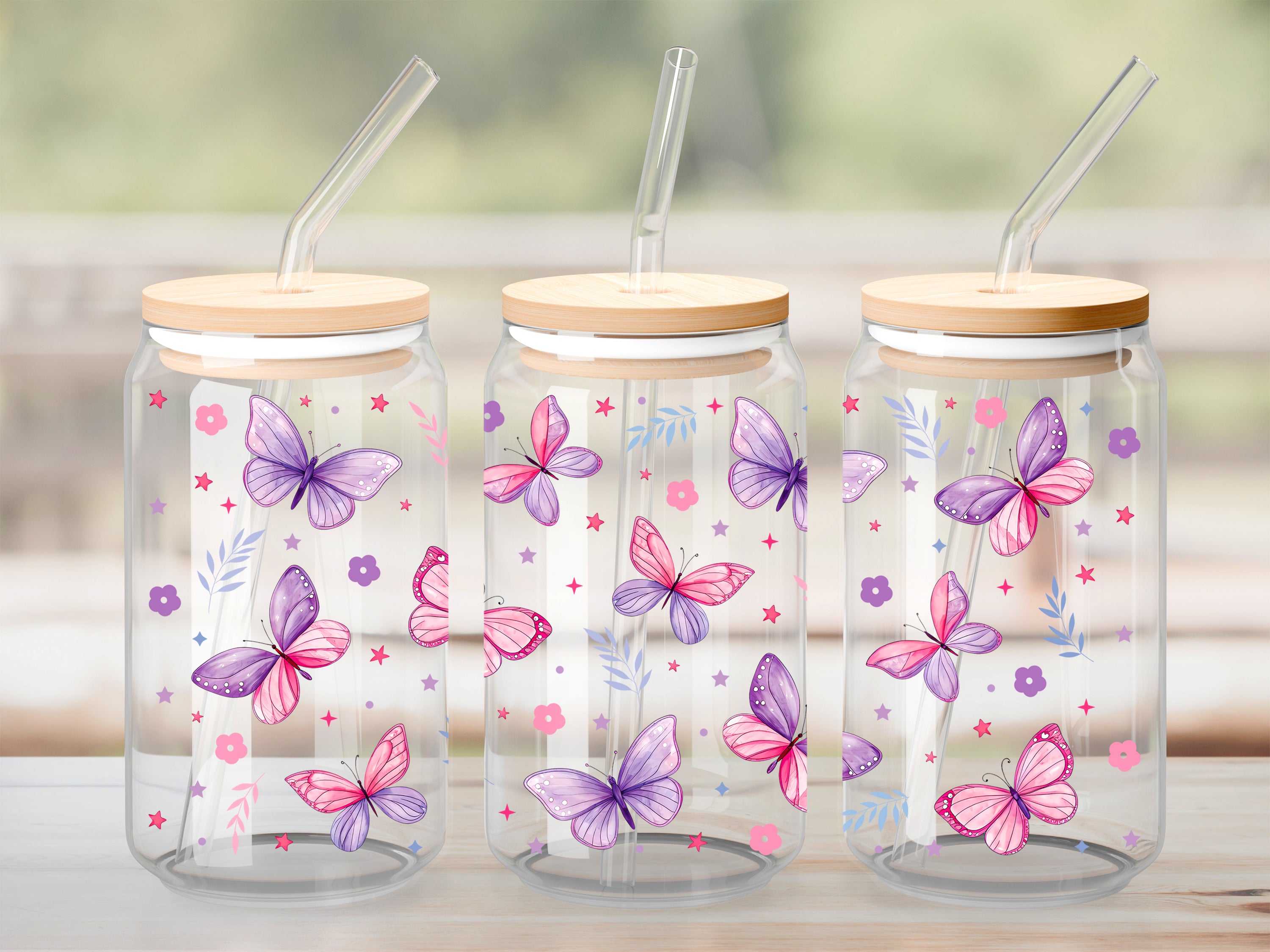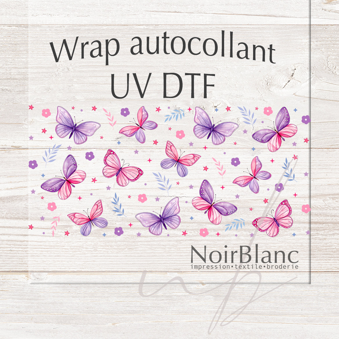 A DTF UV sticker print is an image(s) printed on a transparent film that can then be stuck to a hard, flat surface like glass, plastic, wood, metal, and some types of vinyl. Decorate to your liking: glass, water bottle, coffee mug, candle, flower pot, cell phone case, laptop, tablet, the possibilities are endless. You won't need a press or any heat.