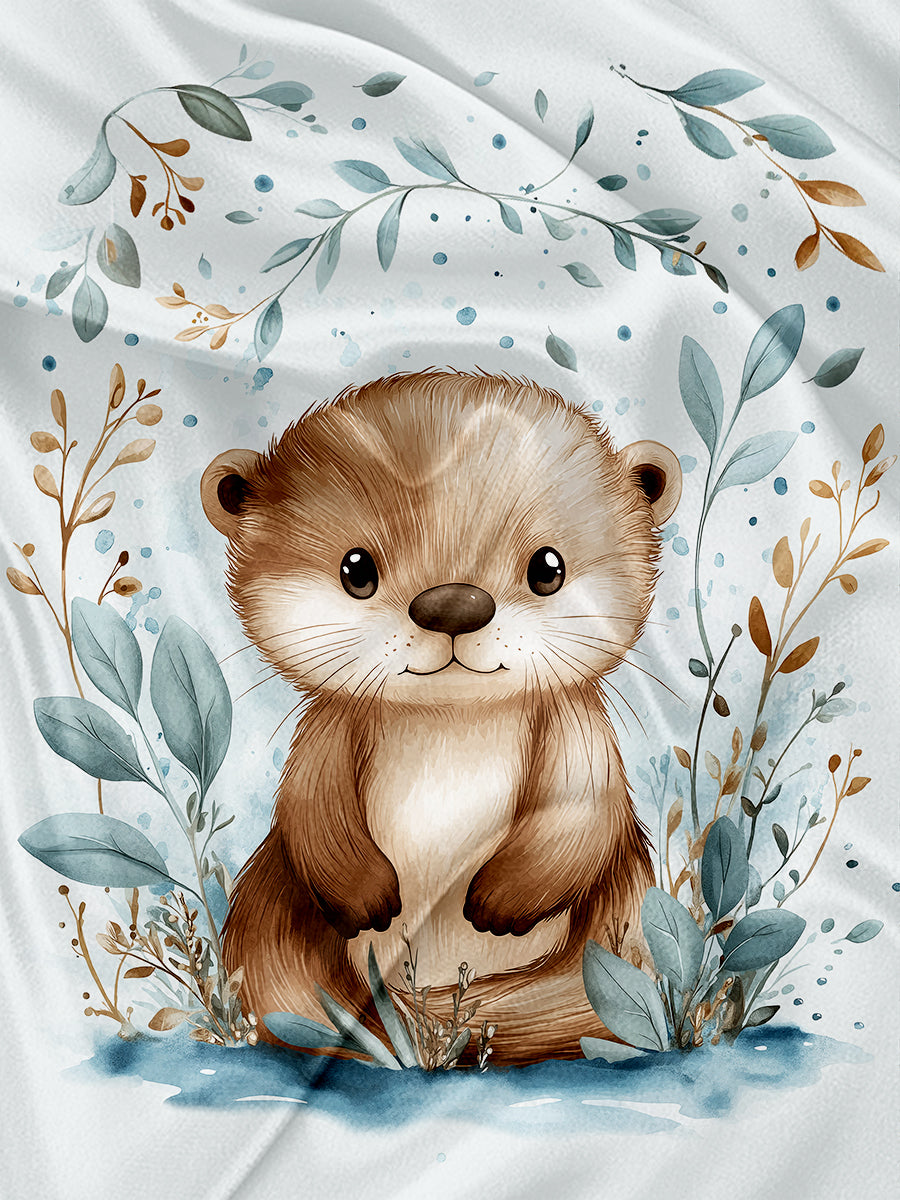 Watercolor Otter and Foliage Towel and Blanket Panel