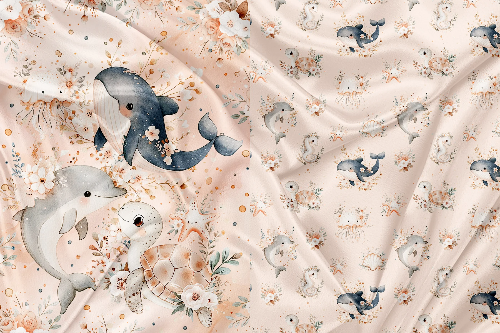 Cotton Spandex - Panel for Clothing and Blanket Ocean Floral Quartz - surplus