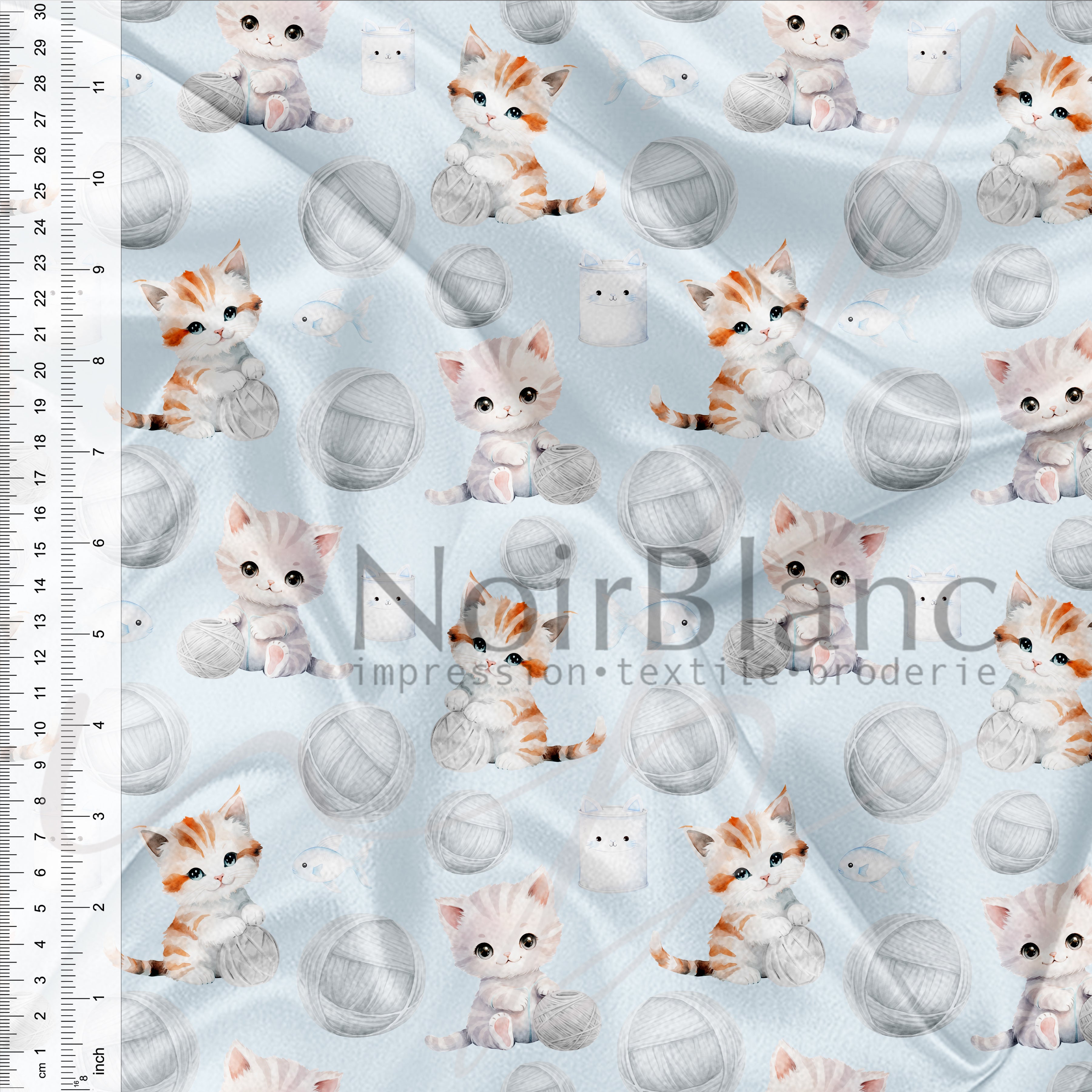 Chaton et balle de laine bleu