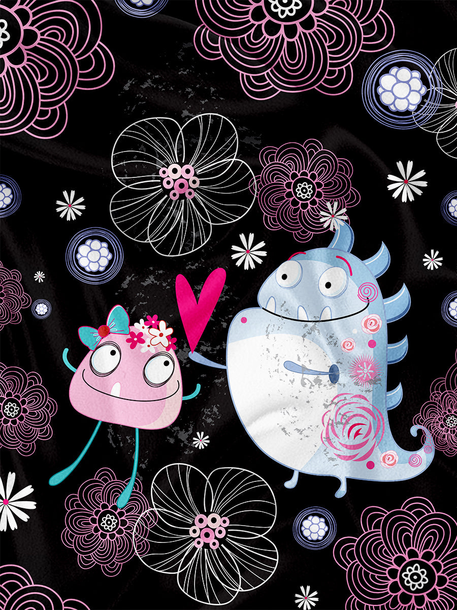Panneau pour Serviette et Couverture Monstres amoureux rose