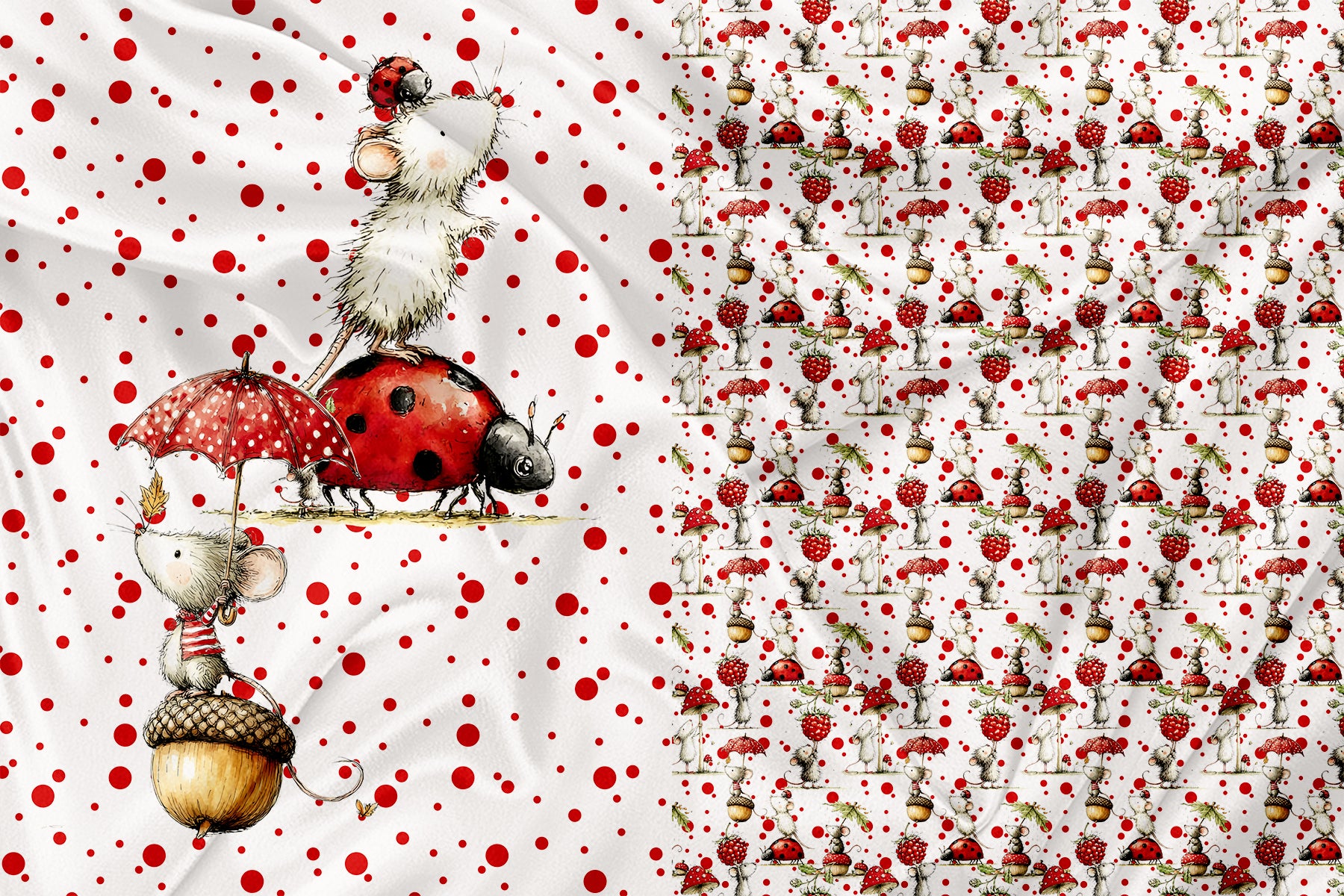 Panneau pour Vêtement et Couverture Framboises et souris - Pelubo Design