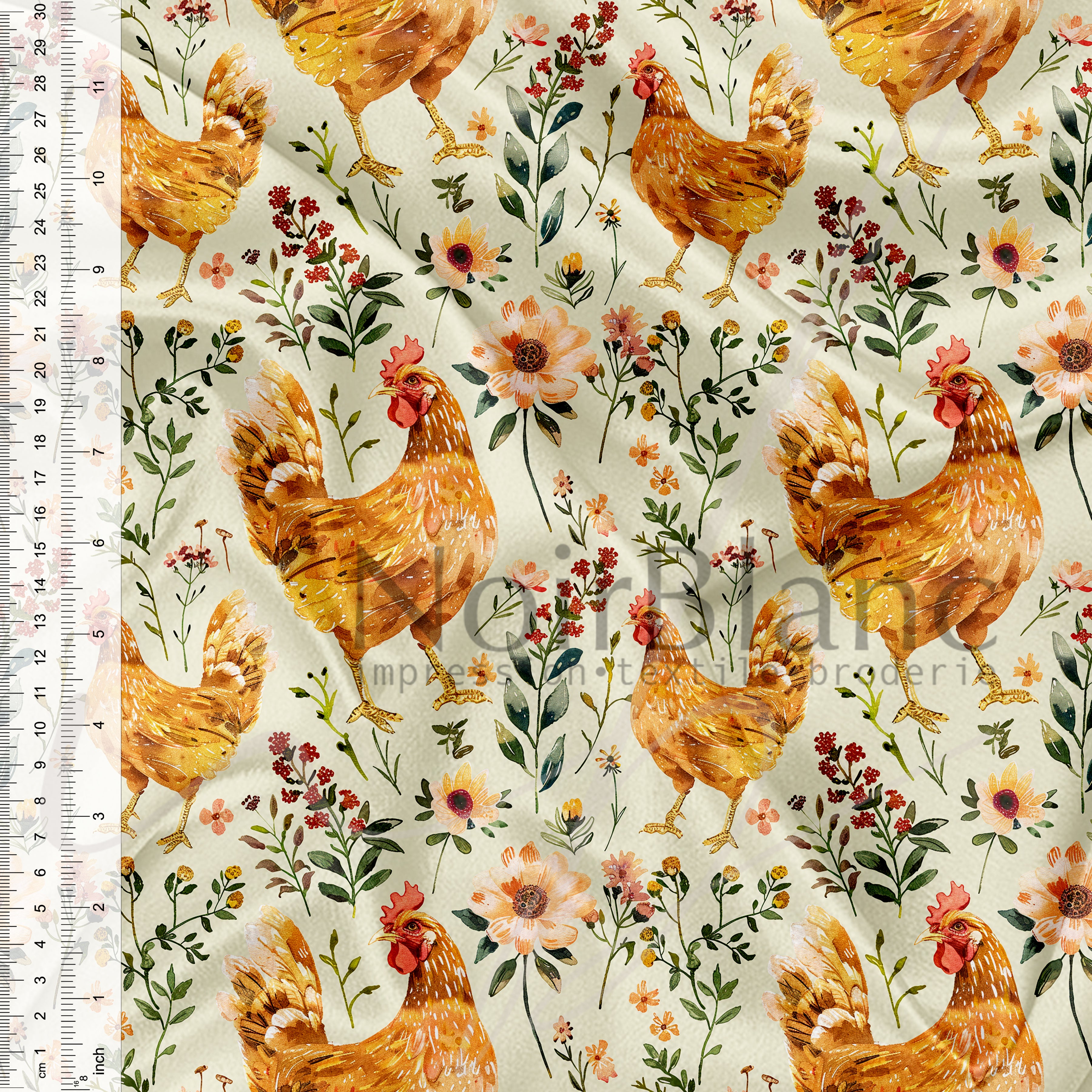 *** La largeur de nos tissus peut varier entre 57 et 60 pouces de large. Par conséquent, la largeur de la zone d'impression variera aussi. TOUT défaut à l'intérieur de la largeur d'impression mais à moins de 1 pouce du bord est considéré comme acceptable et ne sera en aucun cas considéré comme étant défectueux. Par exemple, un tissu où 60 pouces est imprimé, nous nous assurons que 58 pouces est sans défaut. De plus, tout léger défaut d'impression n'excédant pas 1 pouce ou sur le verso du tissu seront jugés comme acceptables. Nous imprimons sur plusieurs imprimantes afin de vous offrir un service d'impression rapide, il peut y avoir une différence de couleurs d'une imprimante à l'autre, d'une fibre à l'autre particulièrement entre les fibres naturelles et le polyester. Nous vous suggérons fortement de toujours commander suffisamment d'un même tissu dans une même commande pour pouvoir finaliser votre projet. ***