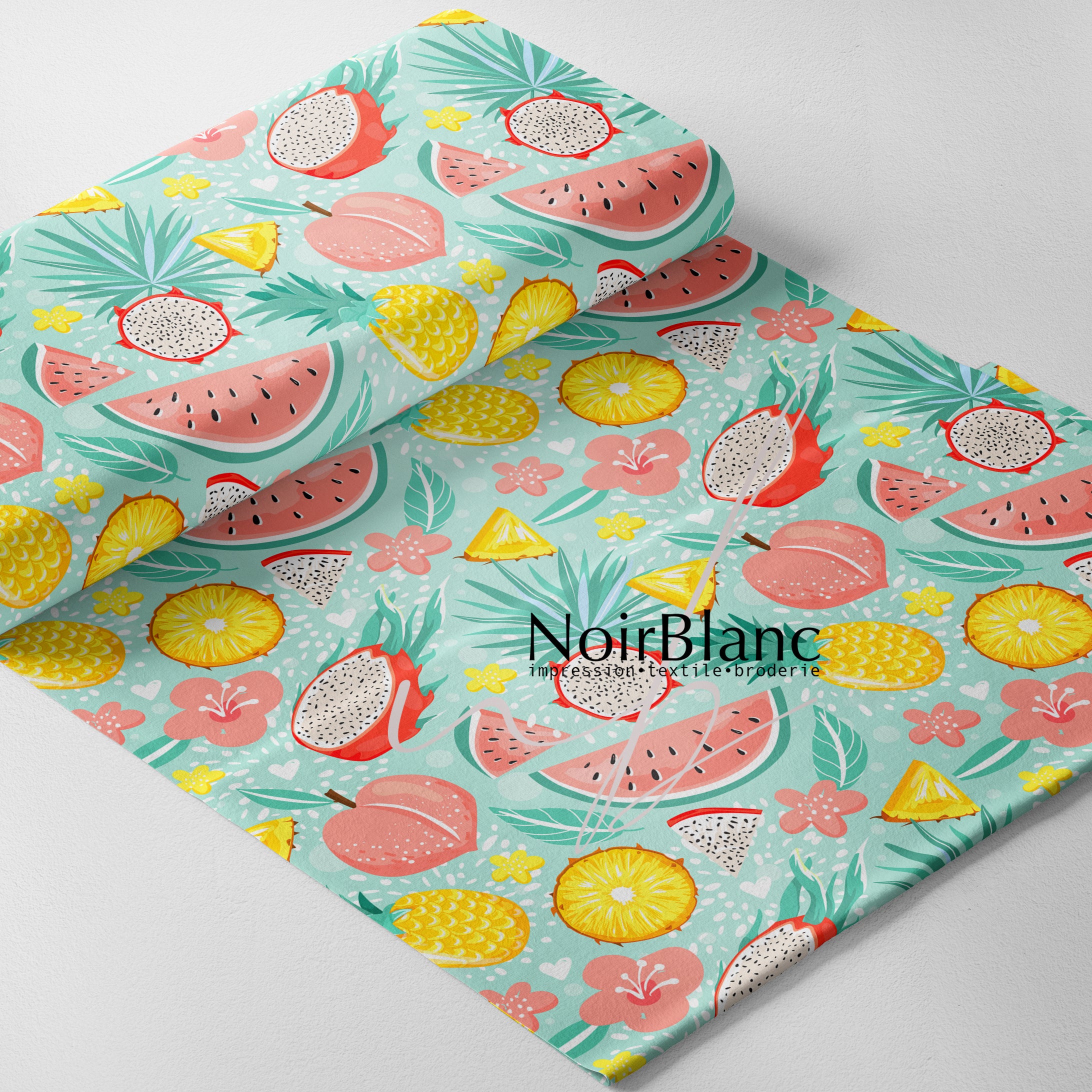 Tous nos tissus sont imprimés par sublimation ou impression directe, sur commande directement à notre atelier à Saint-Eustache, Québec, Canada dans un délai de 3 à 10 jours ouvrables.