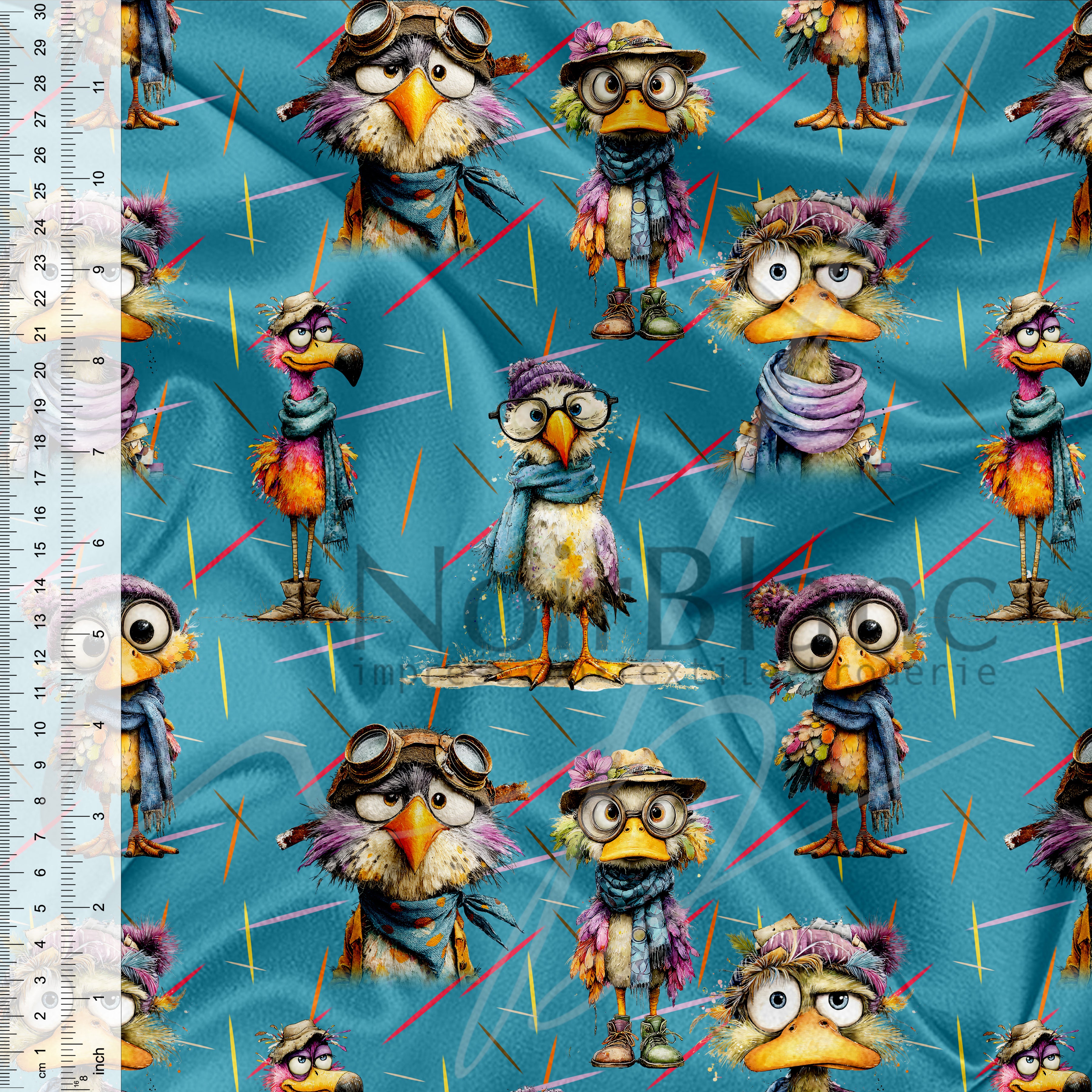 Due aux techniques d'impression utilisées ainsi qu'à la façon de procéder afin de bien fixer les couleurs sur le tissu, la longueur du tissu peut varier de +/- 5% de la quantité commandée.